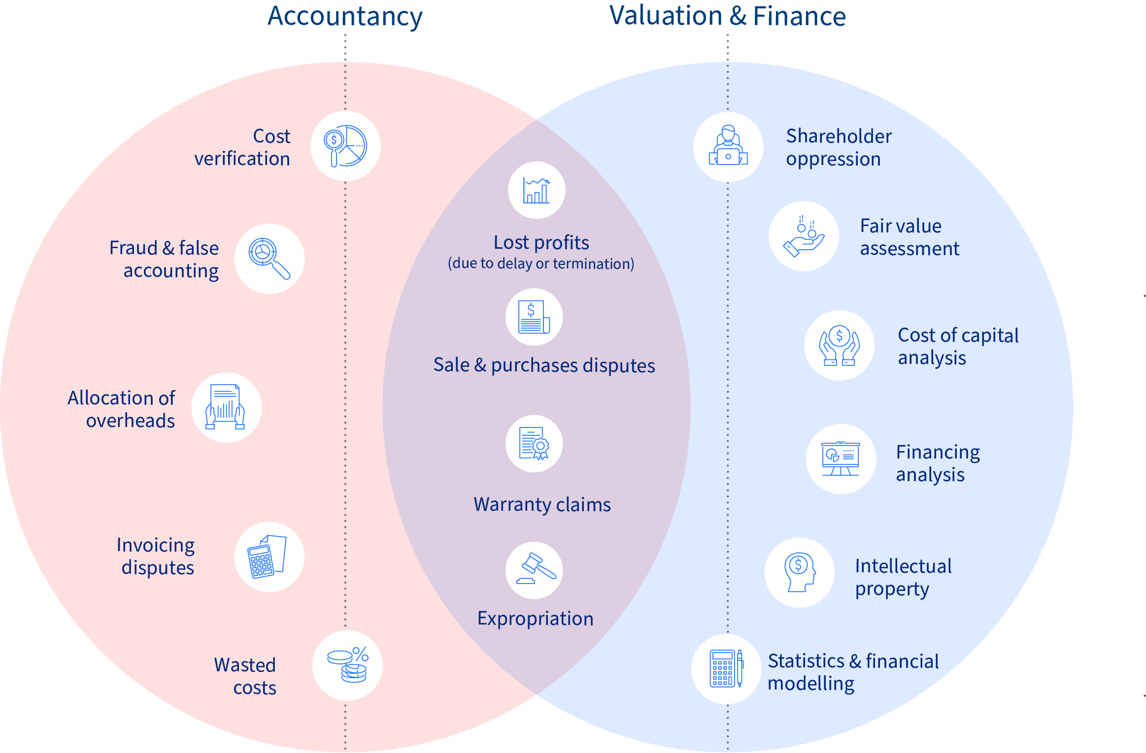 Damages assessment often requires a blend of skills at the intersection of accountancy, valuation and finance. Our deep roster of experts and the focus of our practice means we can identify the right expert for the case at hand in most disputes contexts.